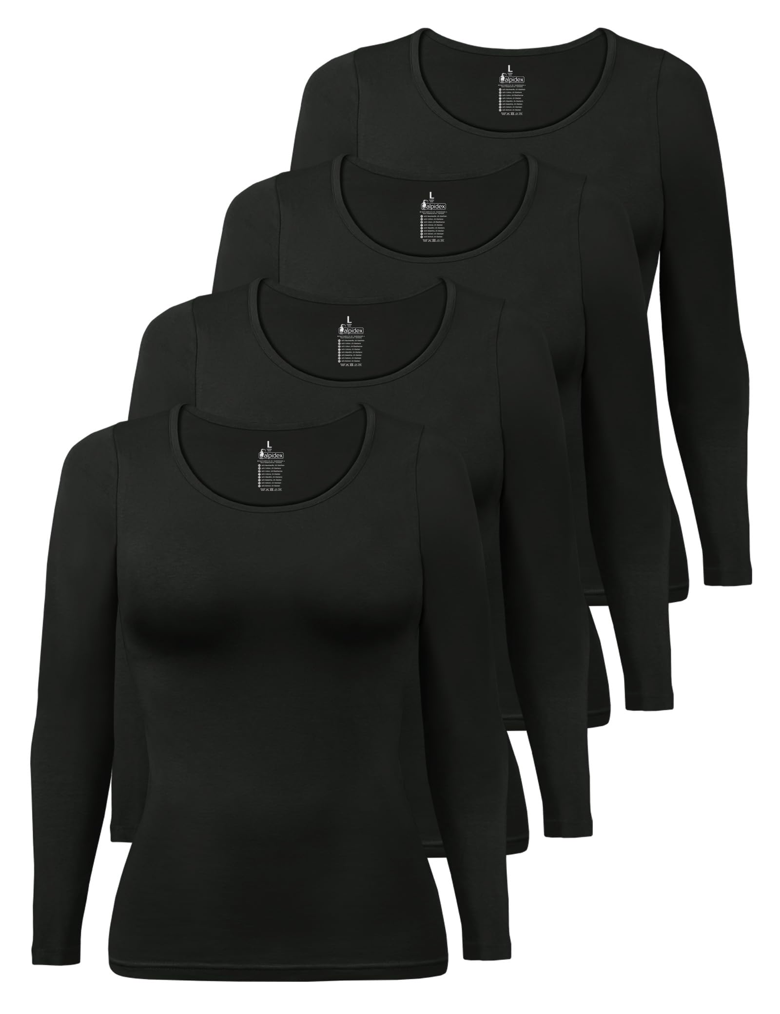 Damen Langarmshirt 4er Set Basic Oberteil Einfarbig Frauen Stretch Shirt Unterhemd Untershirt Longsleeve Baumwolle Rundhals