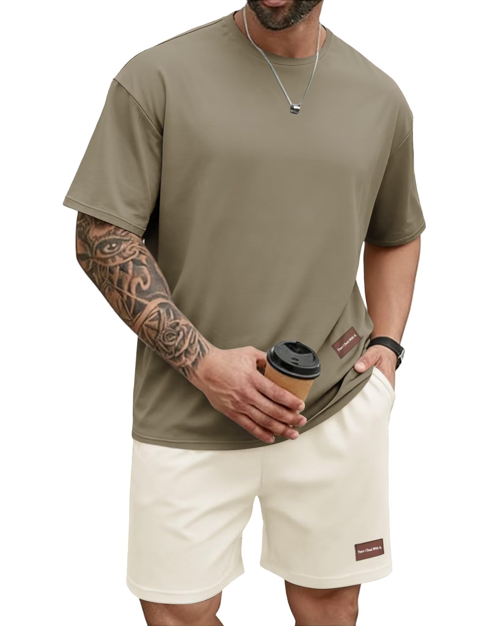 Herren Kurzarm Trainingsanzug 2 Teiler Set Casual T-Shirt Kurze Hose mit Taschen Sommer Jogginganzug für Männer Tracksuit